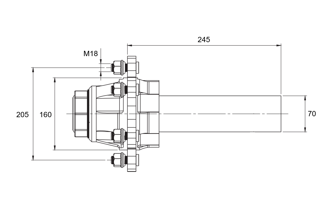 Неблокиращият полуос е предназначен за употреба на различни видове ремаркета без спирачна система. Дължината на полуос е 245 мм, с носимоспособност до 3600 кг.