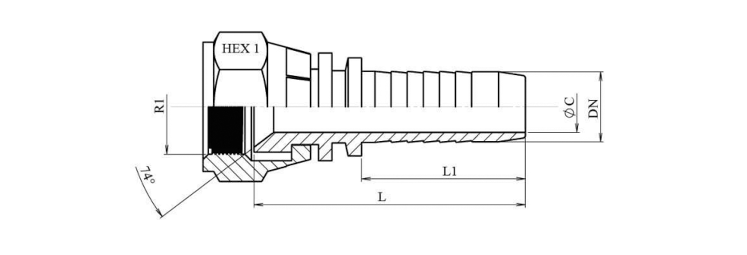 ХИДРАВЛИЧНА ВРЪЗКА DKJ JIC74° ЖЕНСКА DN10-7/8”-14