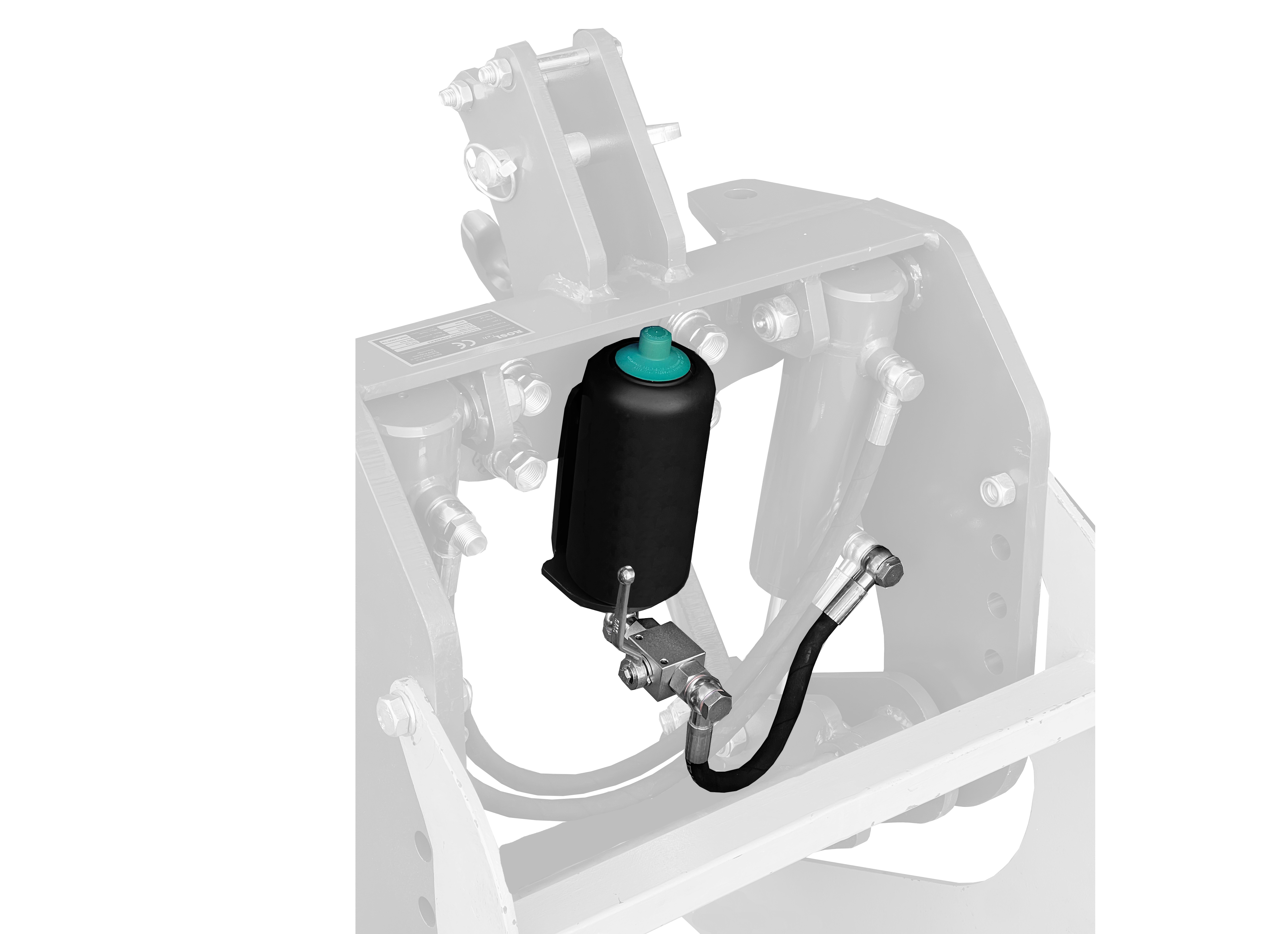 See hüdrauliline akumulaatori komplekt on soovitatav meie traktori esihüdraulikas parema kasutuskogemuse saavutamiseks. Õlivool on sulgurihoova asendis 90° ventiilile lukustatud ning vaba, kui hoob on paralleelne ventiili ja õlivoolikuga.