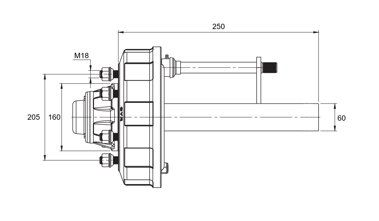 POLUOSOVINA S KOČNICAMA - 2700 kg (6 VIJAKA) - 250 mm