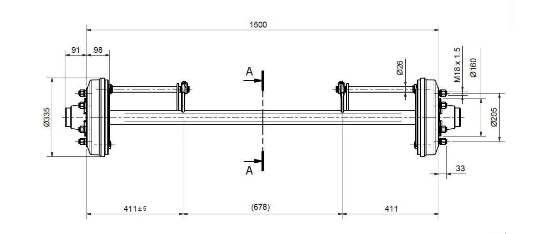 OSOVINA ZA PRIKOLICU S KOČNICAMA (6 VIJAKA) - 4800 kg - 1500 mm