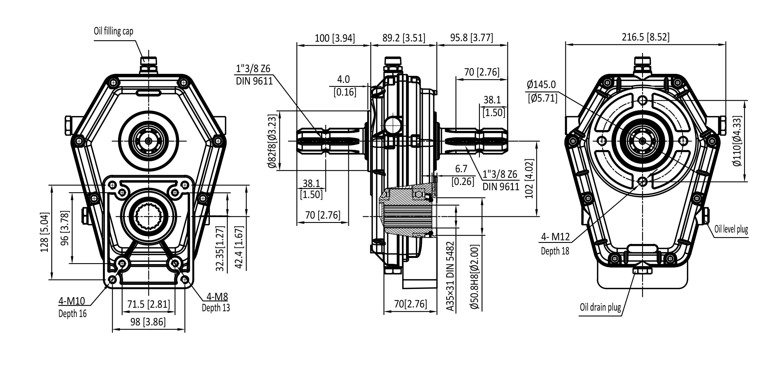 | Conexão: | Eixo PTO em ambos os lados - 1" 3/8 – 6 estrias (macho) |