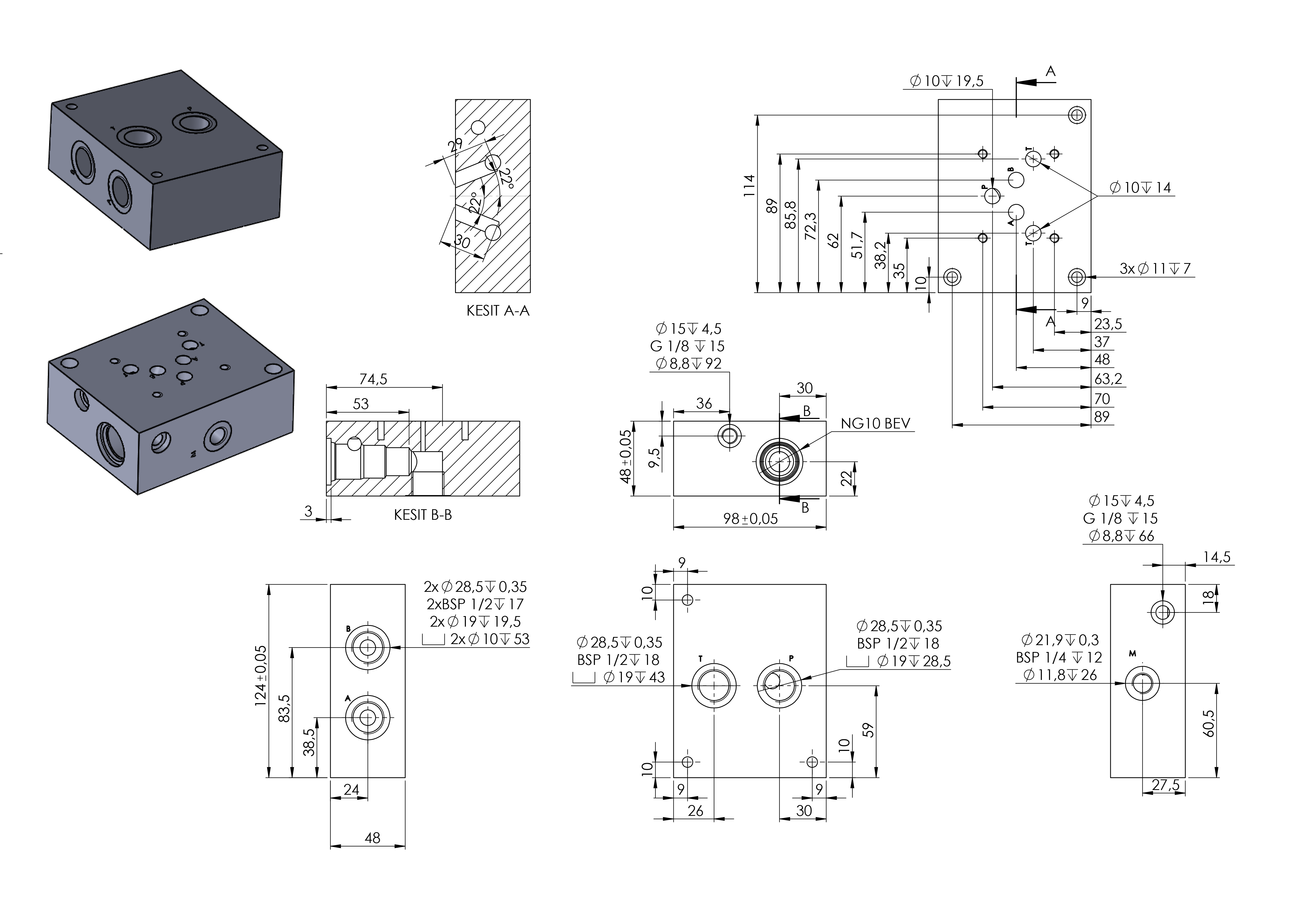 CETOP NG10-RV underplattan är en uppgraderad version av standard NG10 (CETOP 5 / ISO 4401-05) underplatta, med en integrerad tryckavlastningsventil. Den är utformad för att skydda hydraulsystemet från övertryck och säkerställer säker och pålitlig drift.